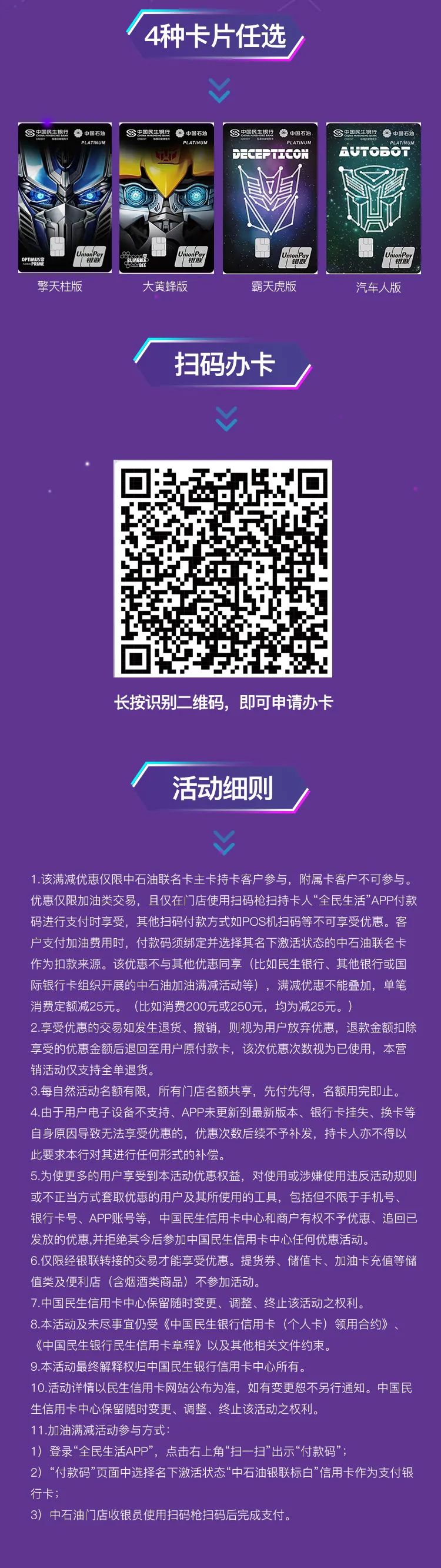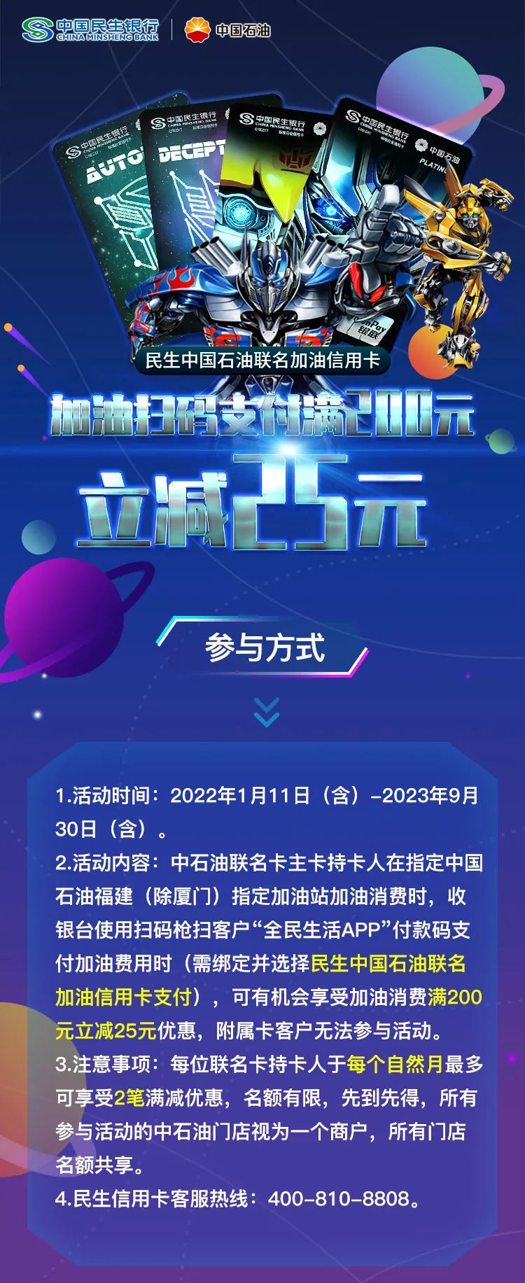 加油满200立减25元!民生中油联名加油信用卡惠加油!