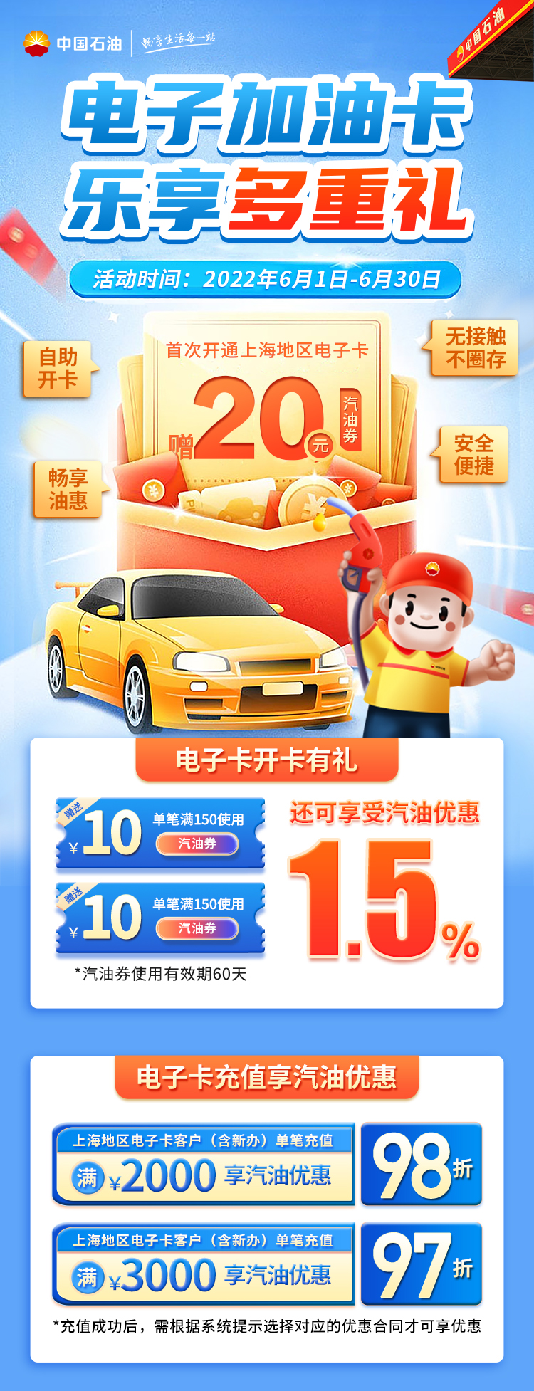 【电子加油卡】无接触不圈存,安全快捷!开卡即赠20元汽油券!