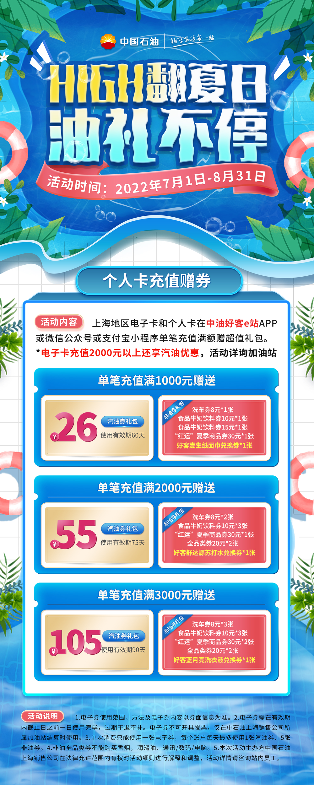 high翻夏日,“油”礼不停!充值最高可得105元汽油券!