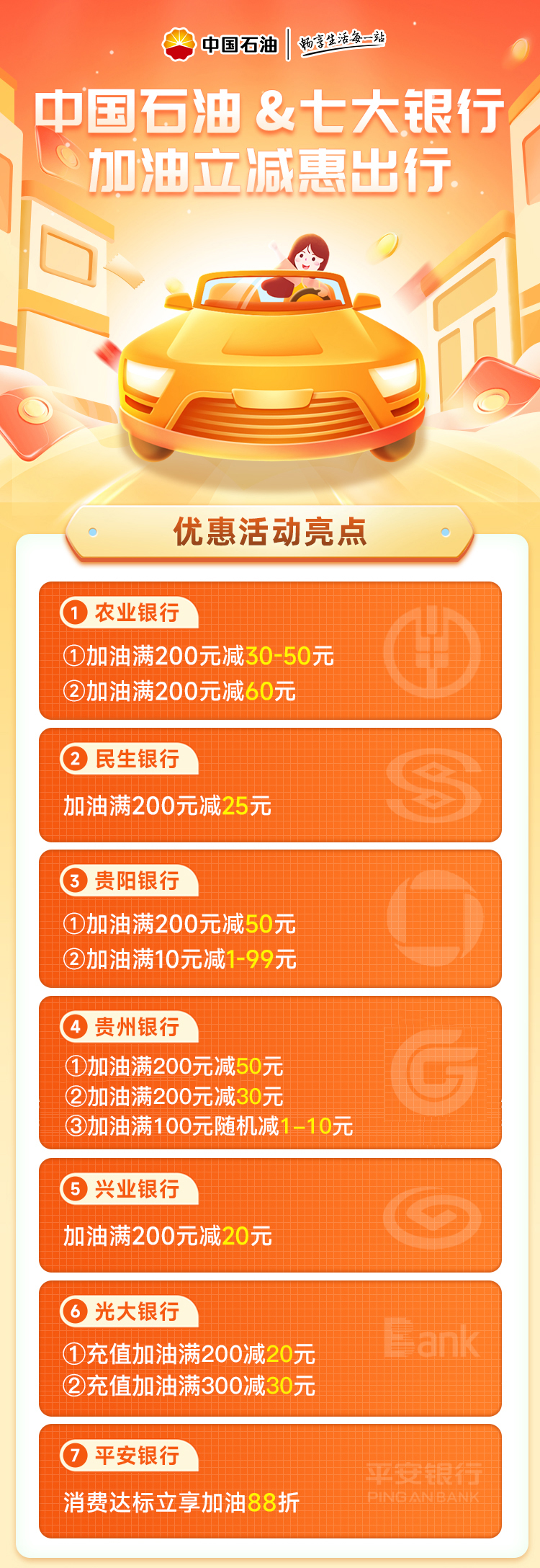 加油最高减99元!中国石油携手7大银行惠加油!