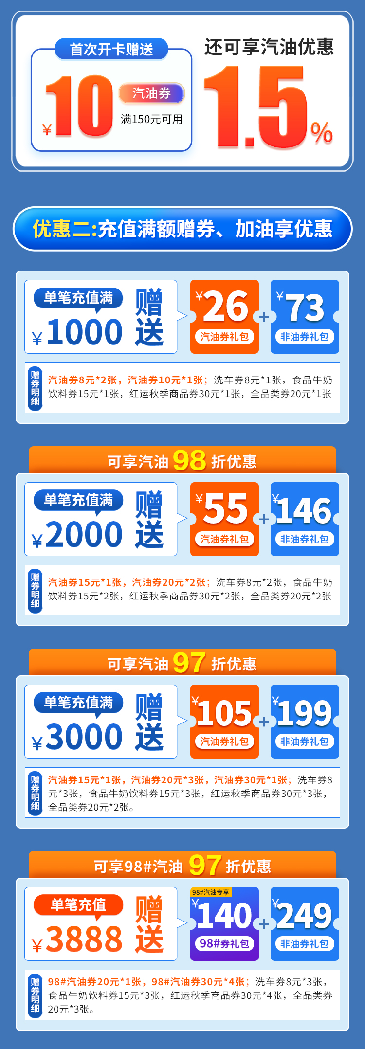 【充值赠券】最高可得389元券礼包,还可享加油优惠!