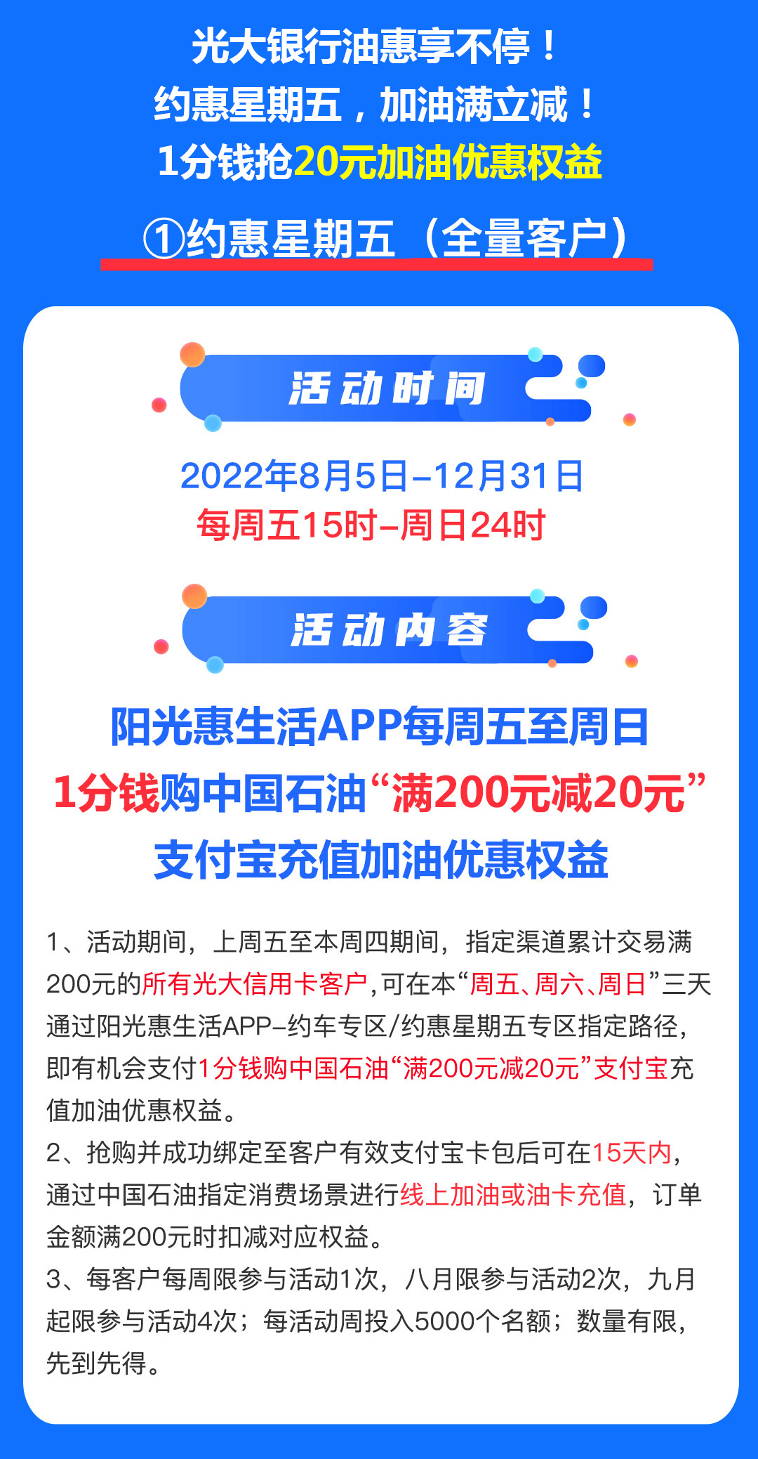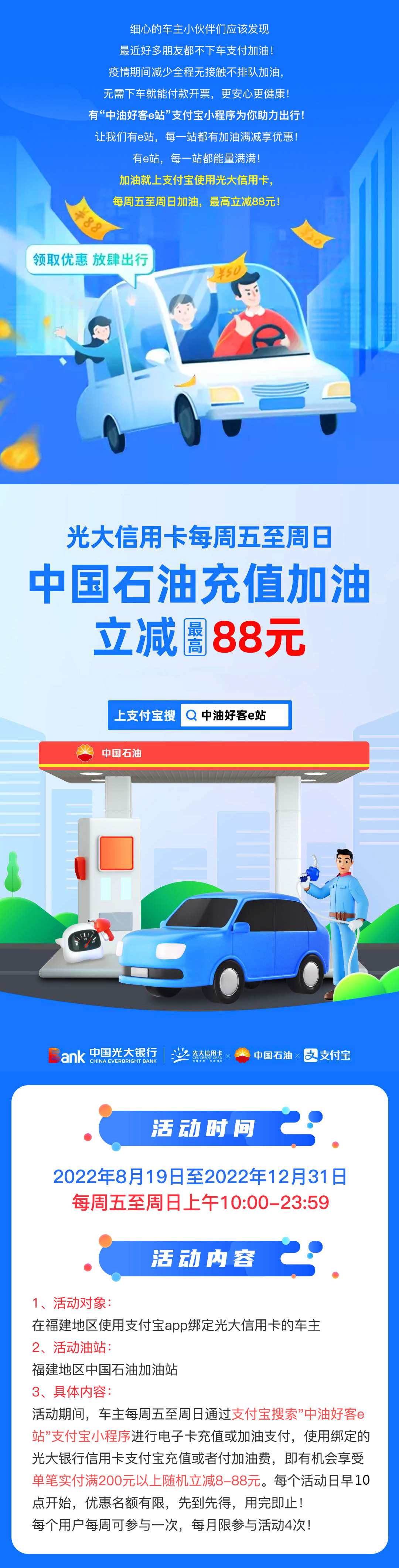 加油/充值最高立减88元!光大信用卡每周五至周日惠出行!