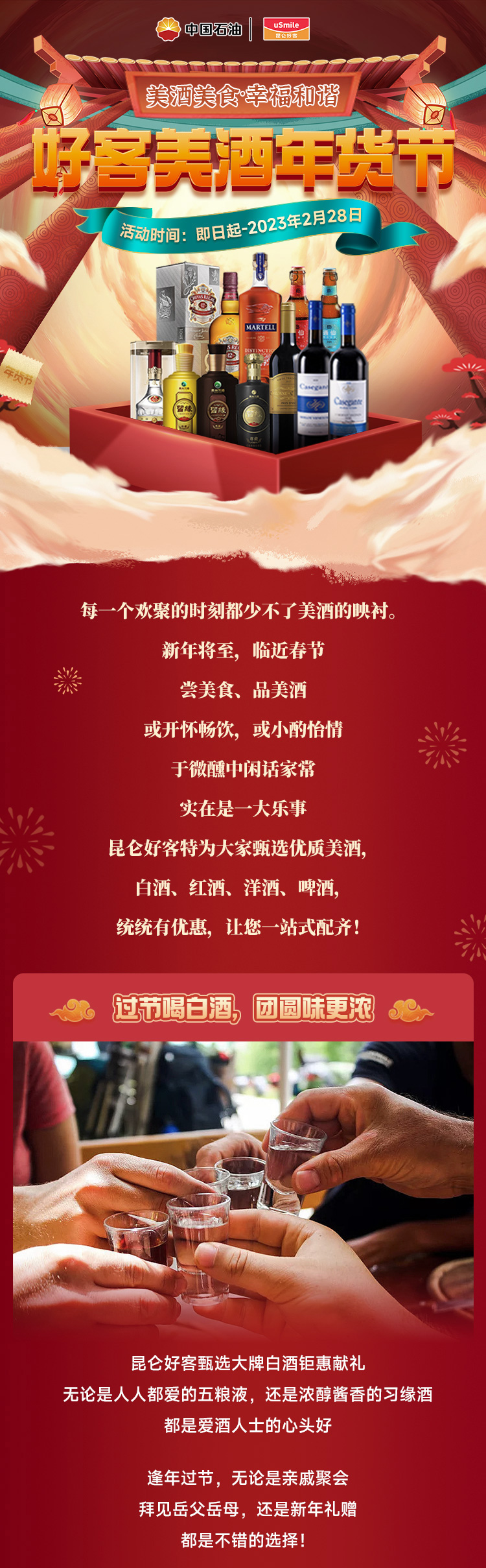 好客美酒年货节,惠享美酒礼包, 共享欢聚时刻!