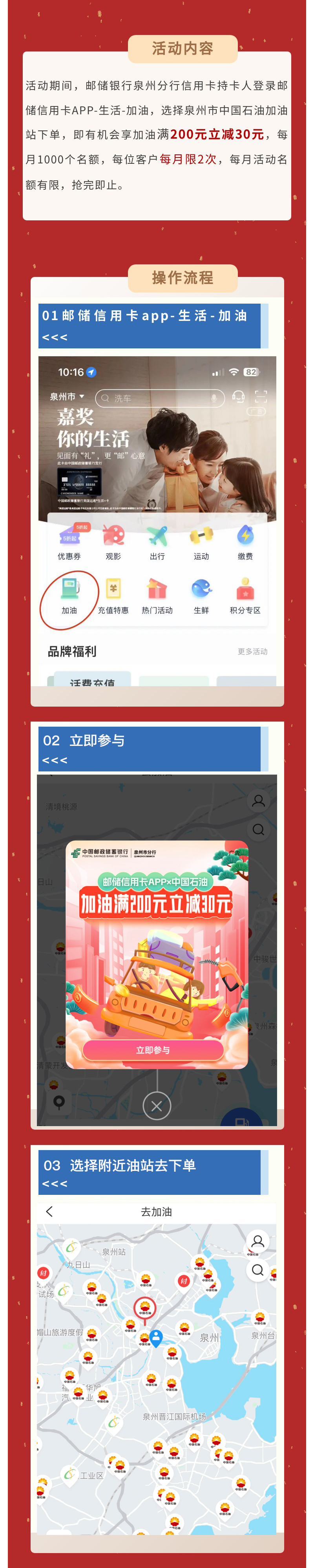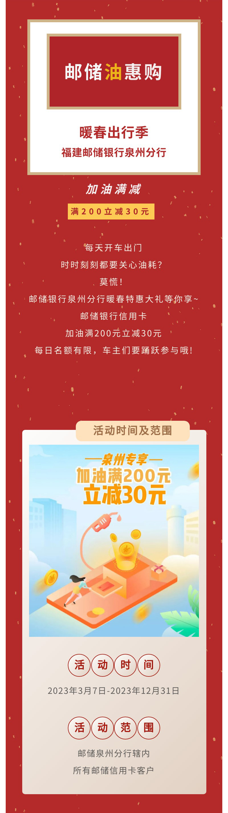 加油满200立减30元!中国石油&泉州邮储信用卡惠加油!