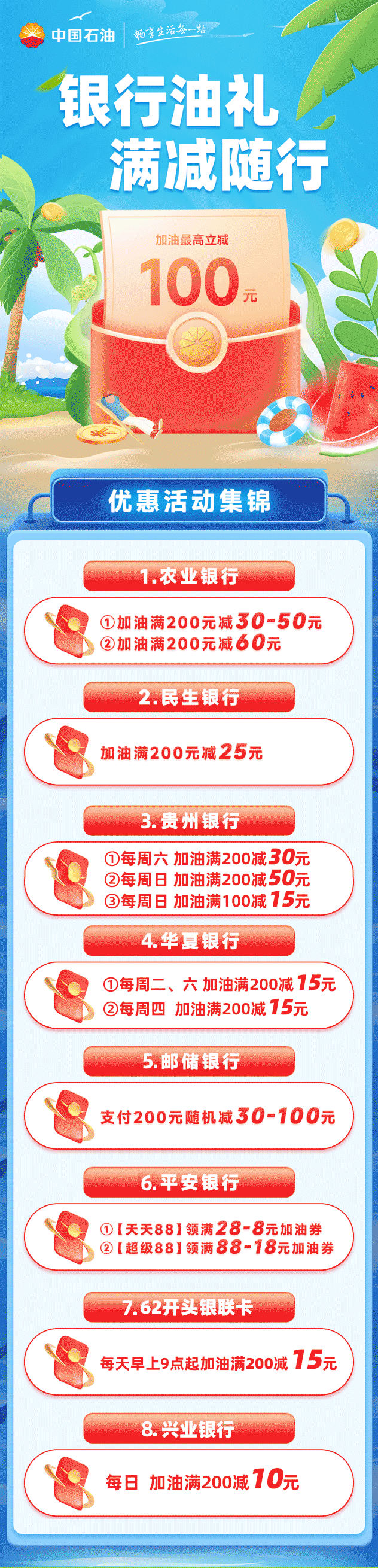 支付最高减100元!银行油礼大集结,满减随行乐无忧!