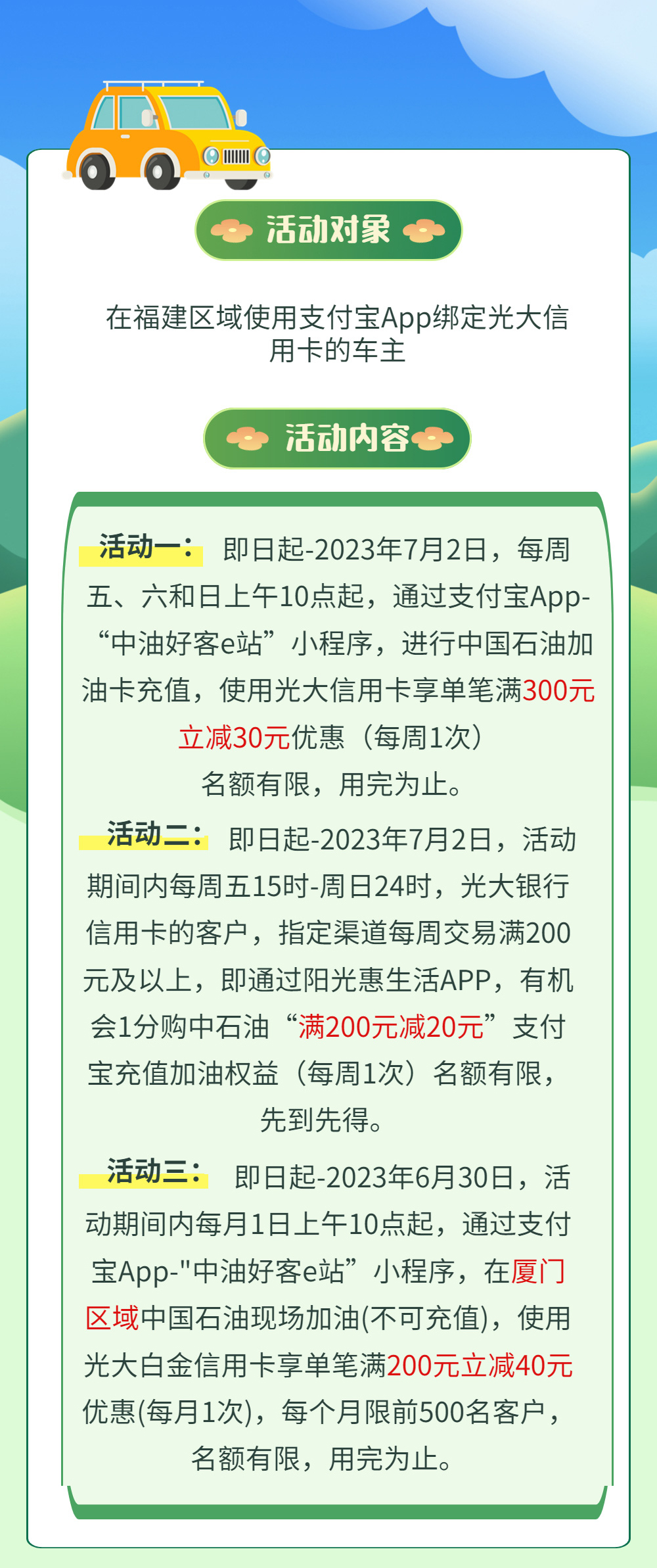 最高满减30元!光大银行携手支付宝惠加油!
