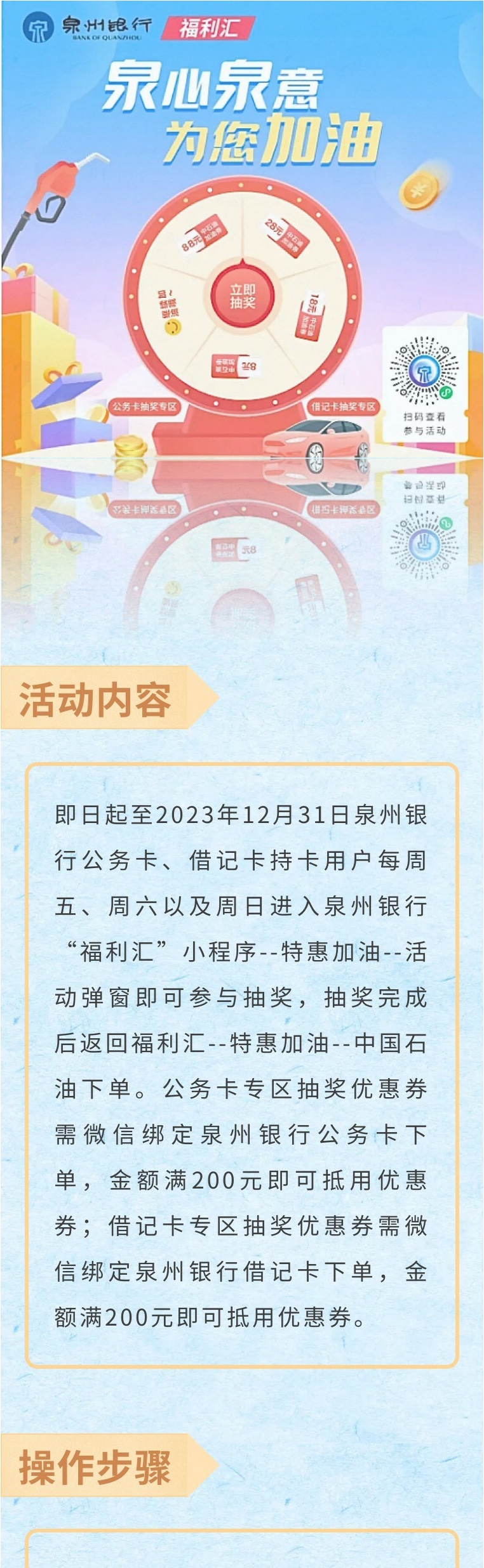 泉州银行大抽奖!最高抽88元加油券!