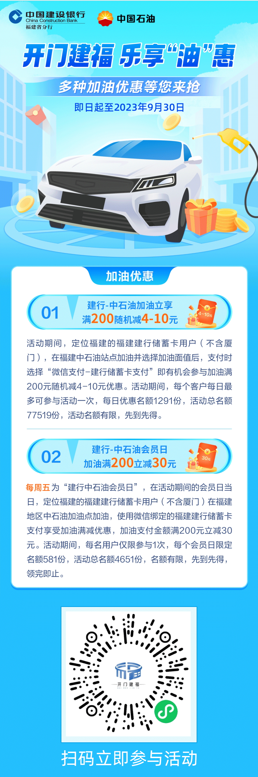 建行&中石油双减来袭!周五会员日加油满200至少减34元!