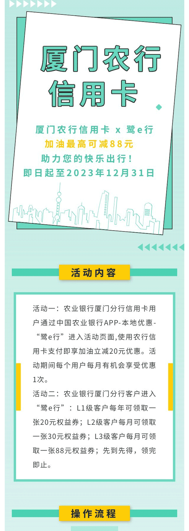厦门农行信用卡×鹭e行!,加油最高可减88元!