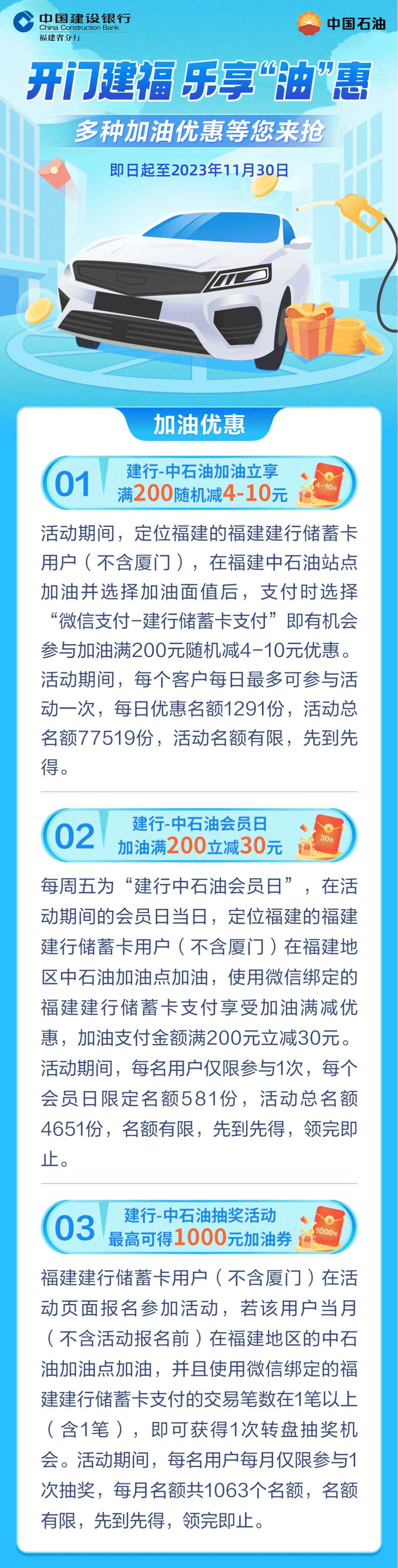 建行携手中石油多重优惠来袭!最高抽1000元加油券!