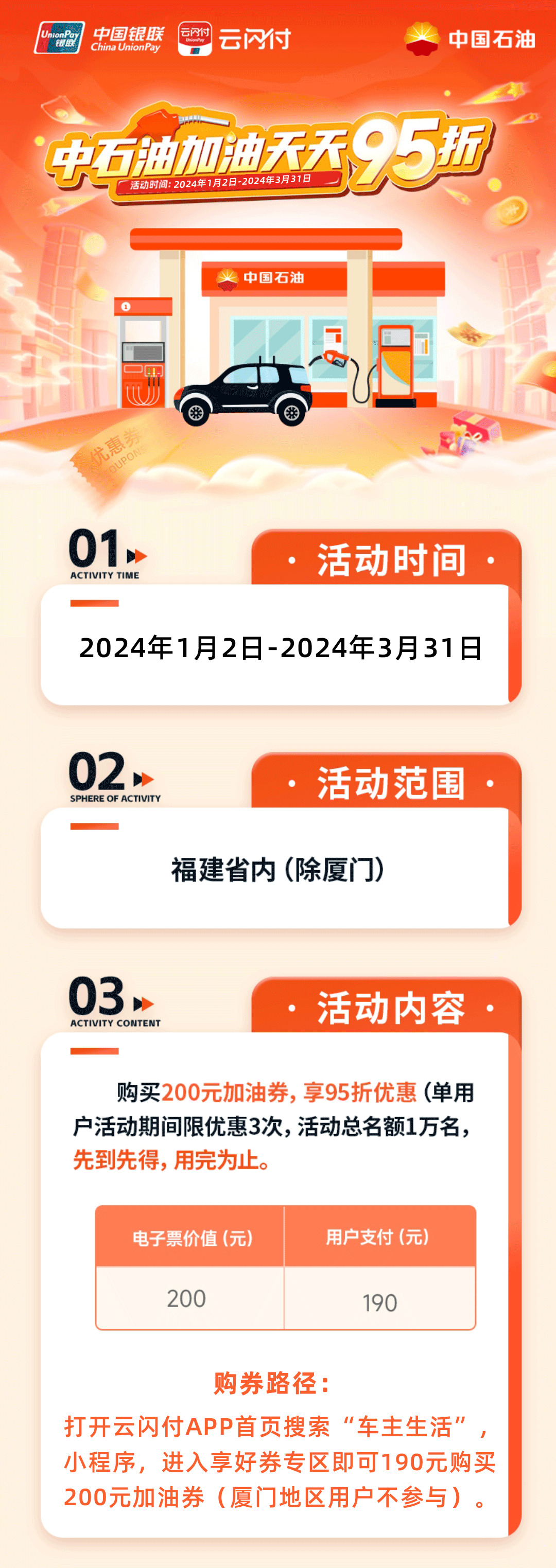 200元加油券95折天天享!