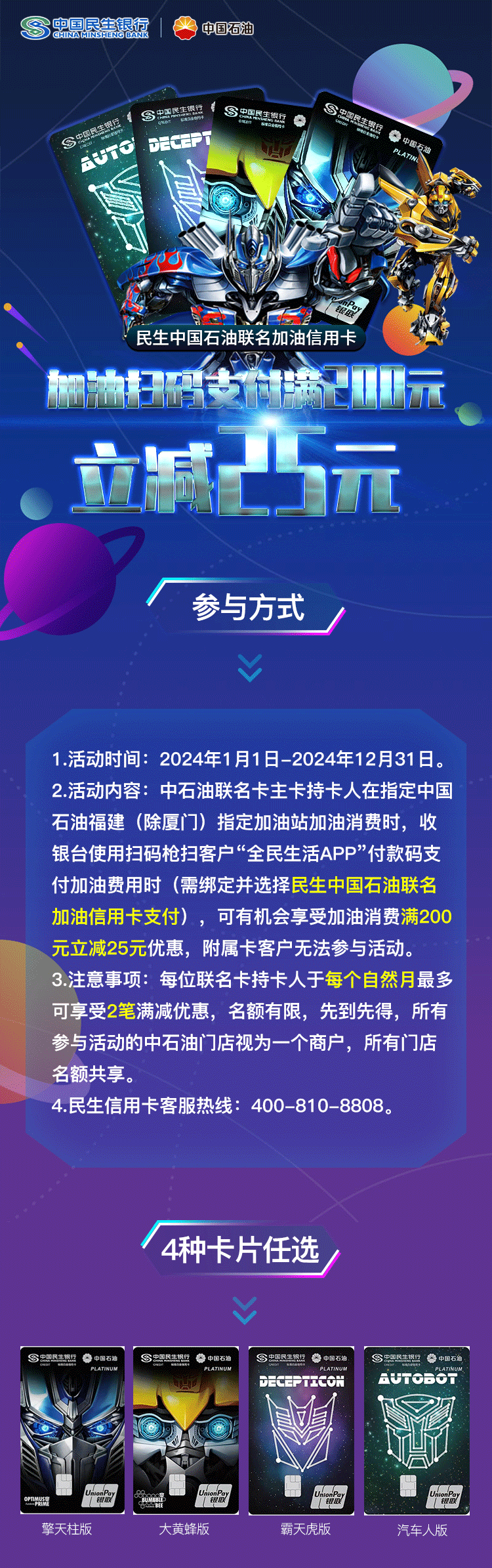 民生银行惠加油,满200立减25元!