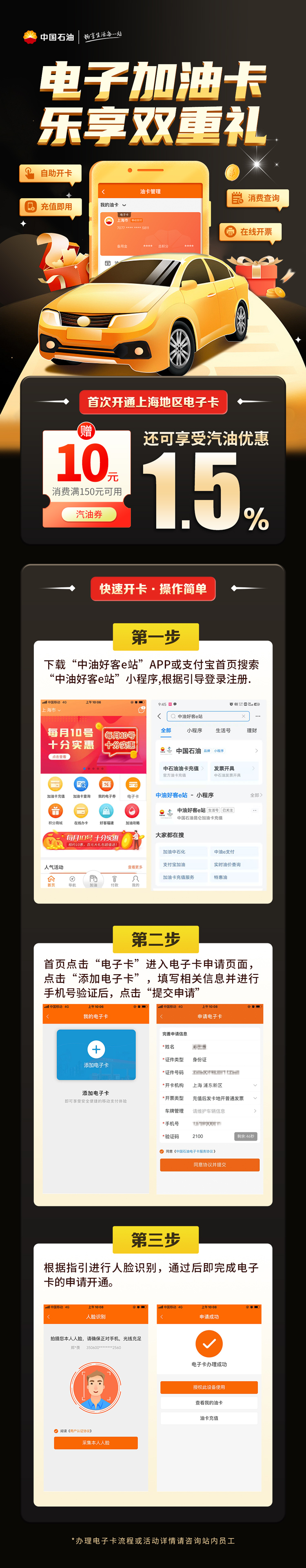 【无接触加油】开卡即赠10元汽油券,还享1.5%汽油优惠!