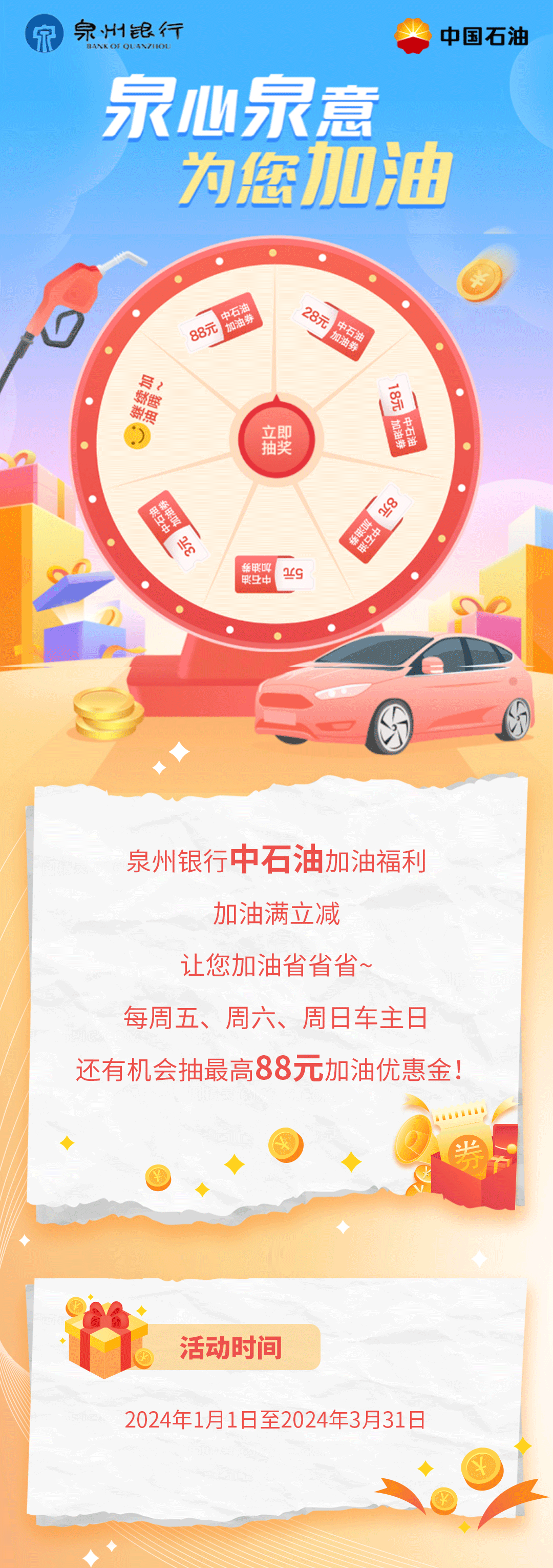 泉州银行惠加油!最高抽88元加油优惠金!
