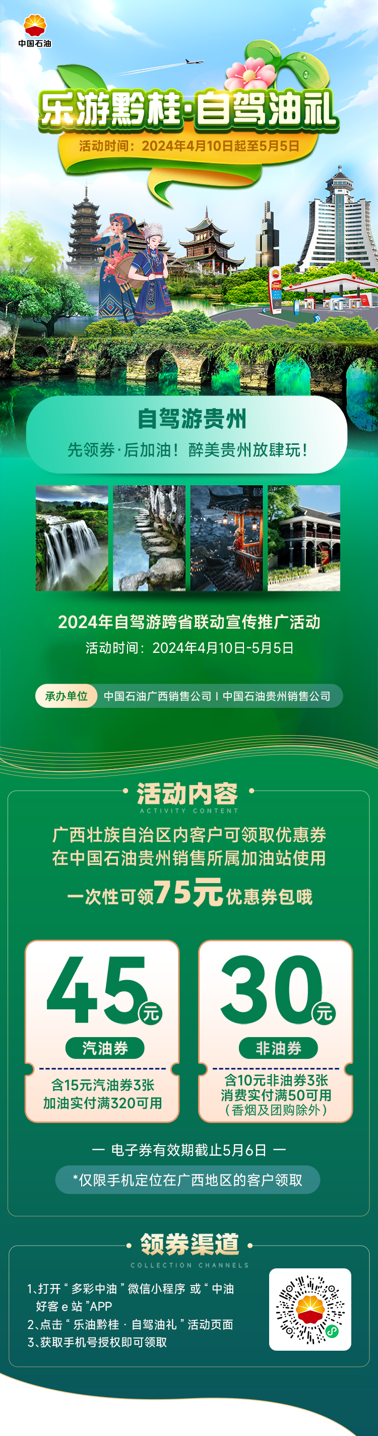 自驾游贵州,中石油送礼!来领75元优惠券包!