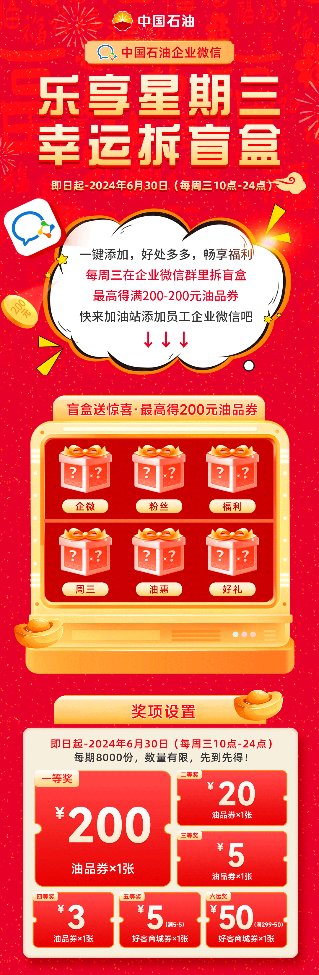 周三企微粉丝福利日,拆盲盒得200元加油券!