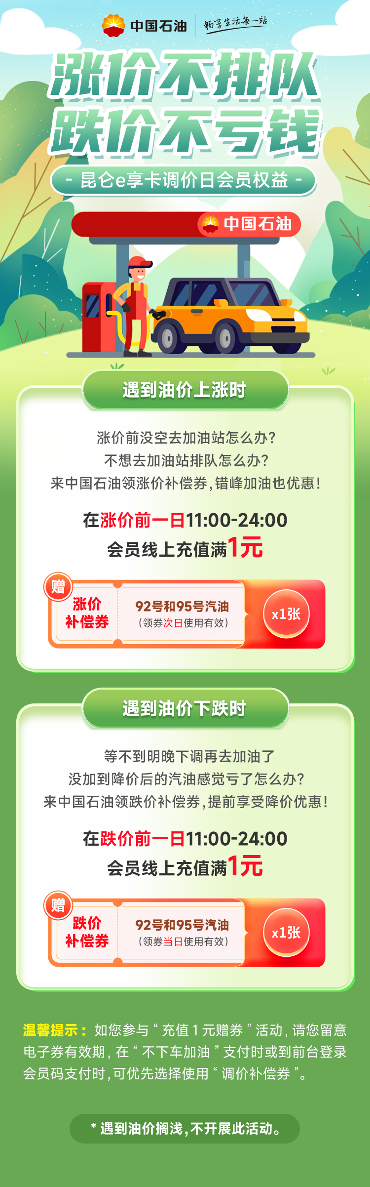 涨价不排队,跌价不亏钱!中国石油送调价补偿券!