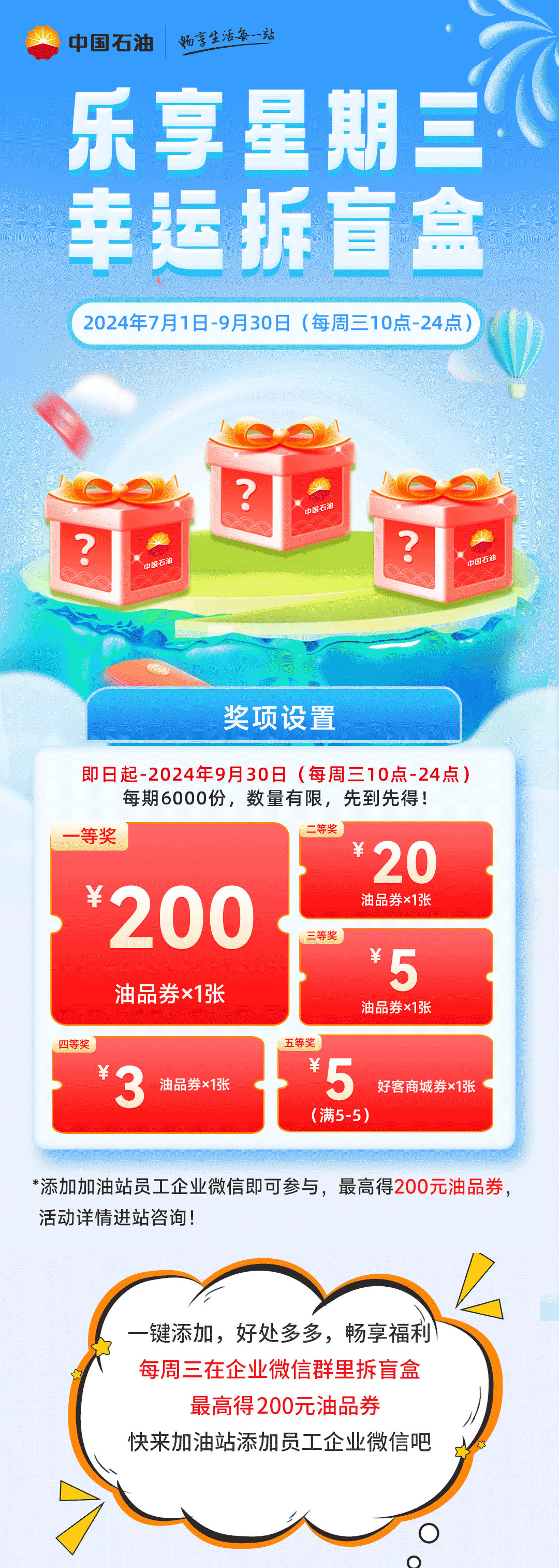 周三企微拆盲盒,最高得200元油券!