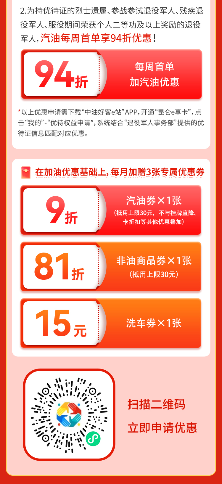 退役军人专属优惠来啦!持优待证加油,至高94折!