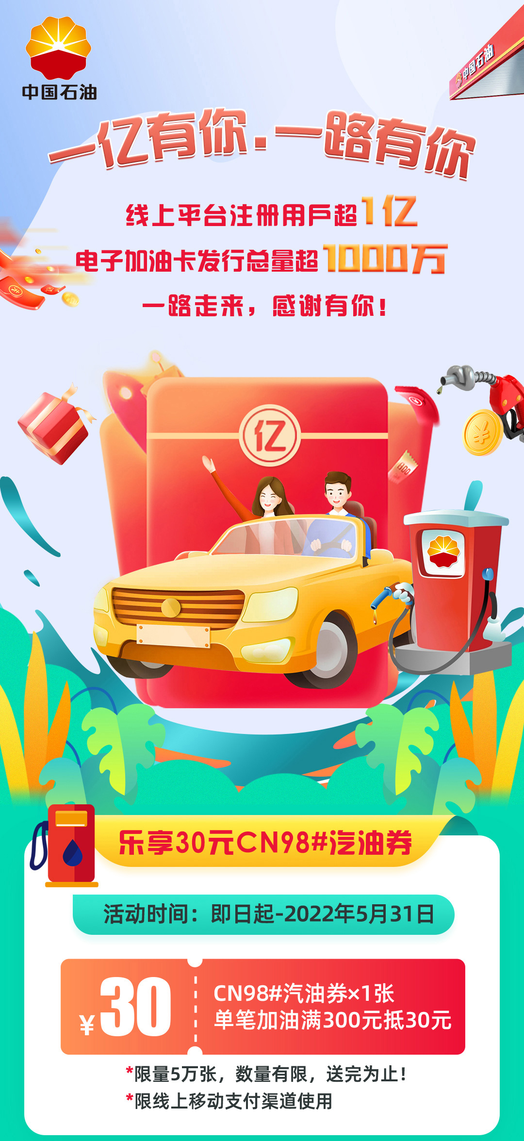 一亿有你,一路有你!30元CN98#专享油券快来领‼️