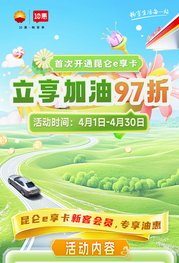 北京用户首次开通昆仑e享卡,立享加油97折!