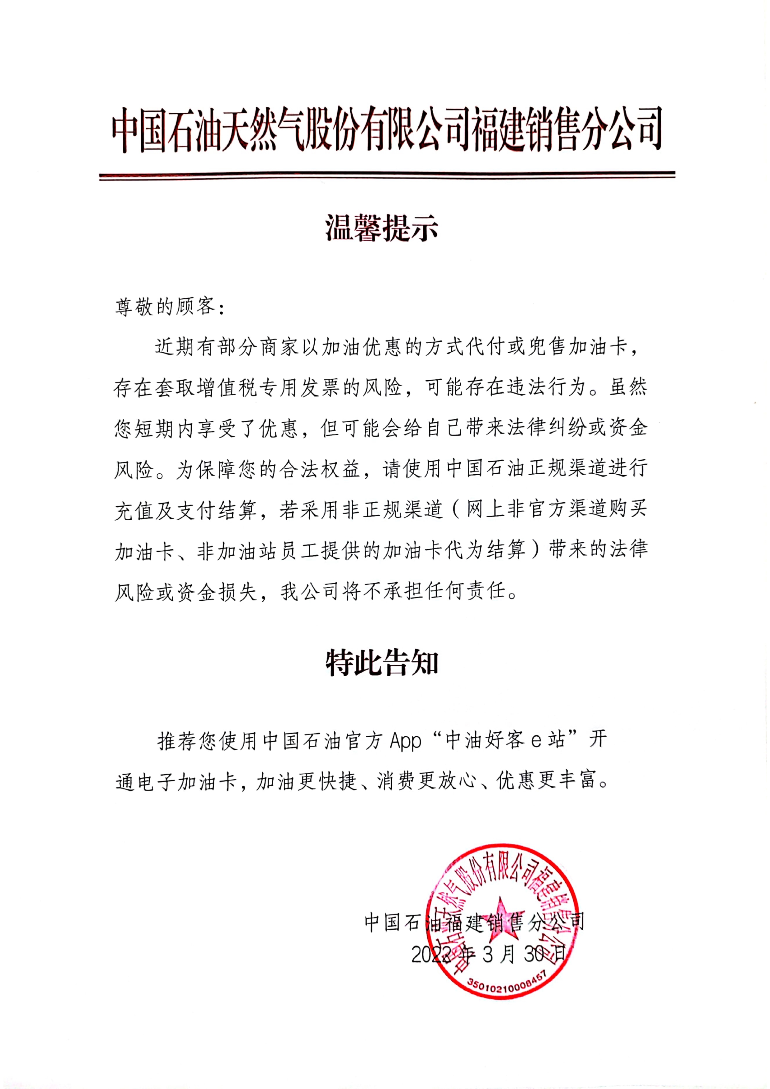 中国石油告客户书
