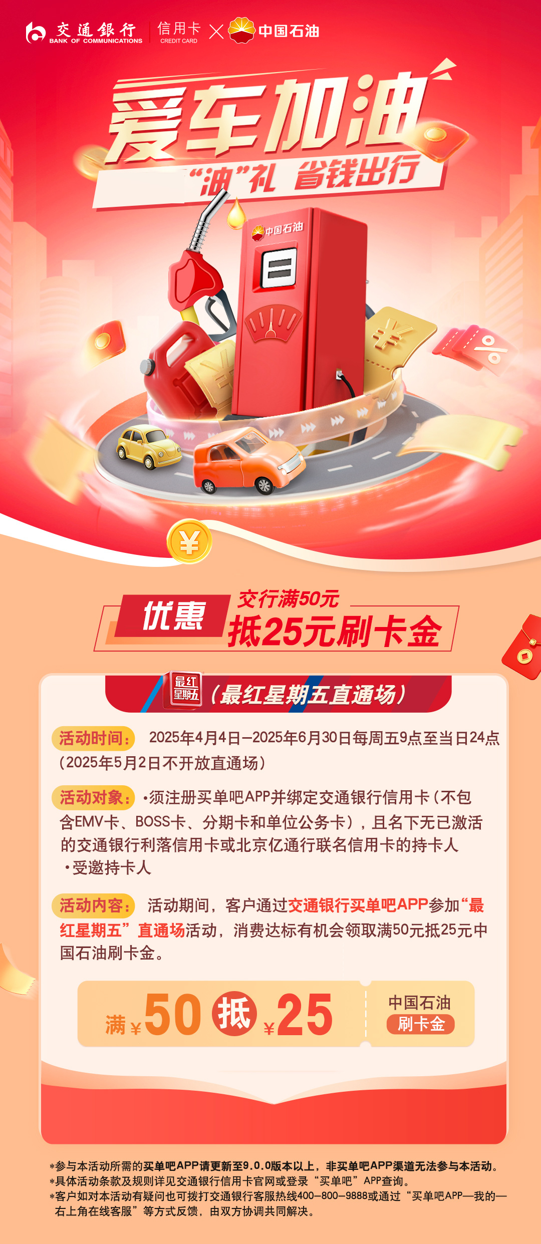 交通银行惠加油!达标立领25元中石油刷卡金!