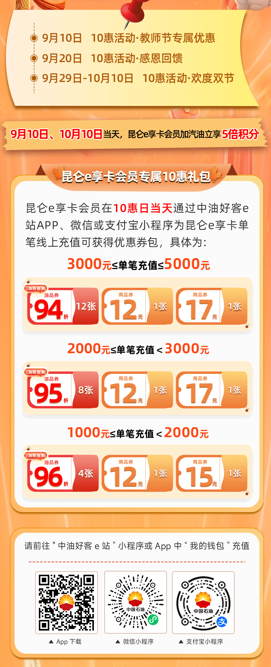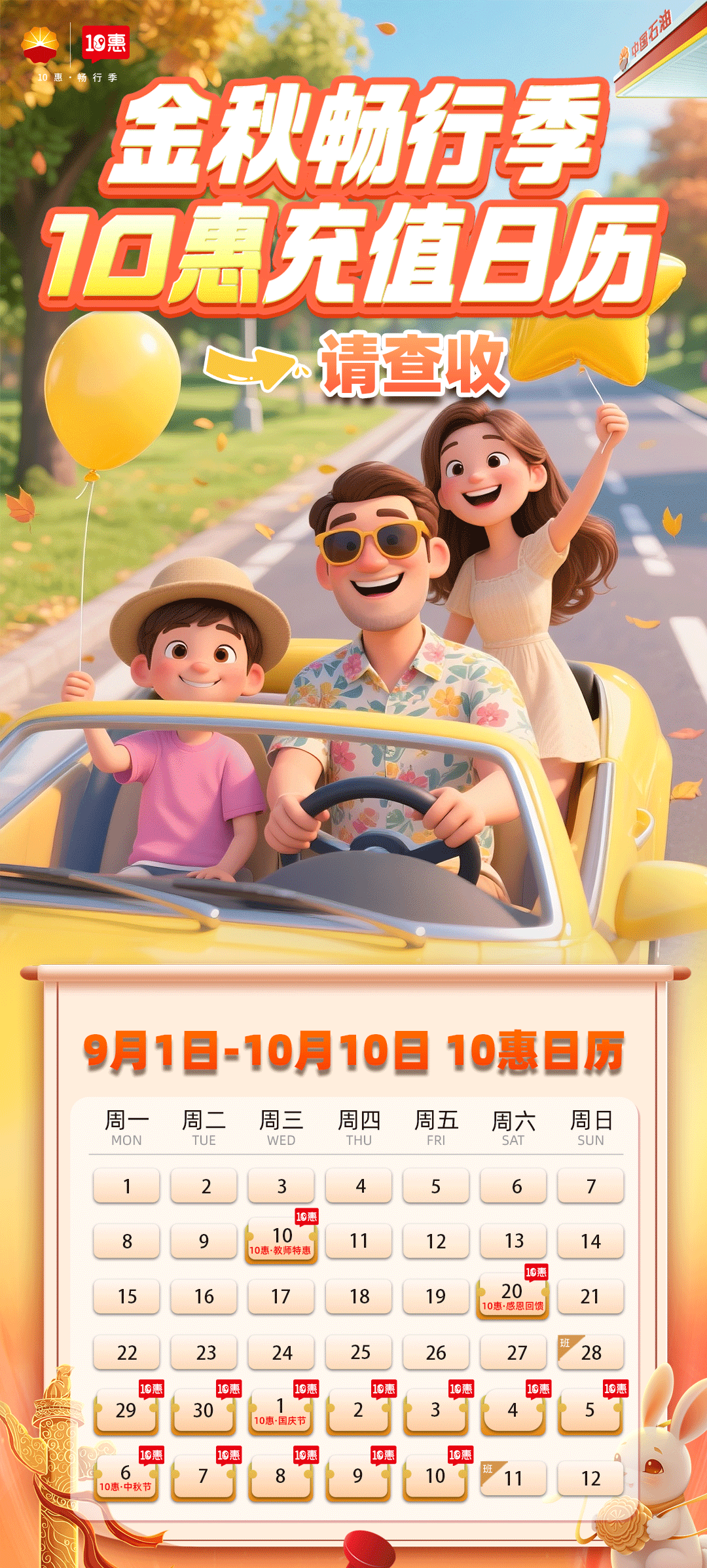 金秋畅行季,10惠充值日历