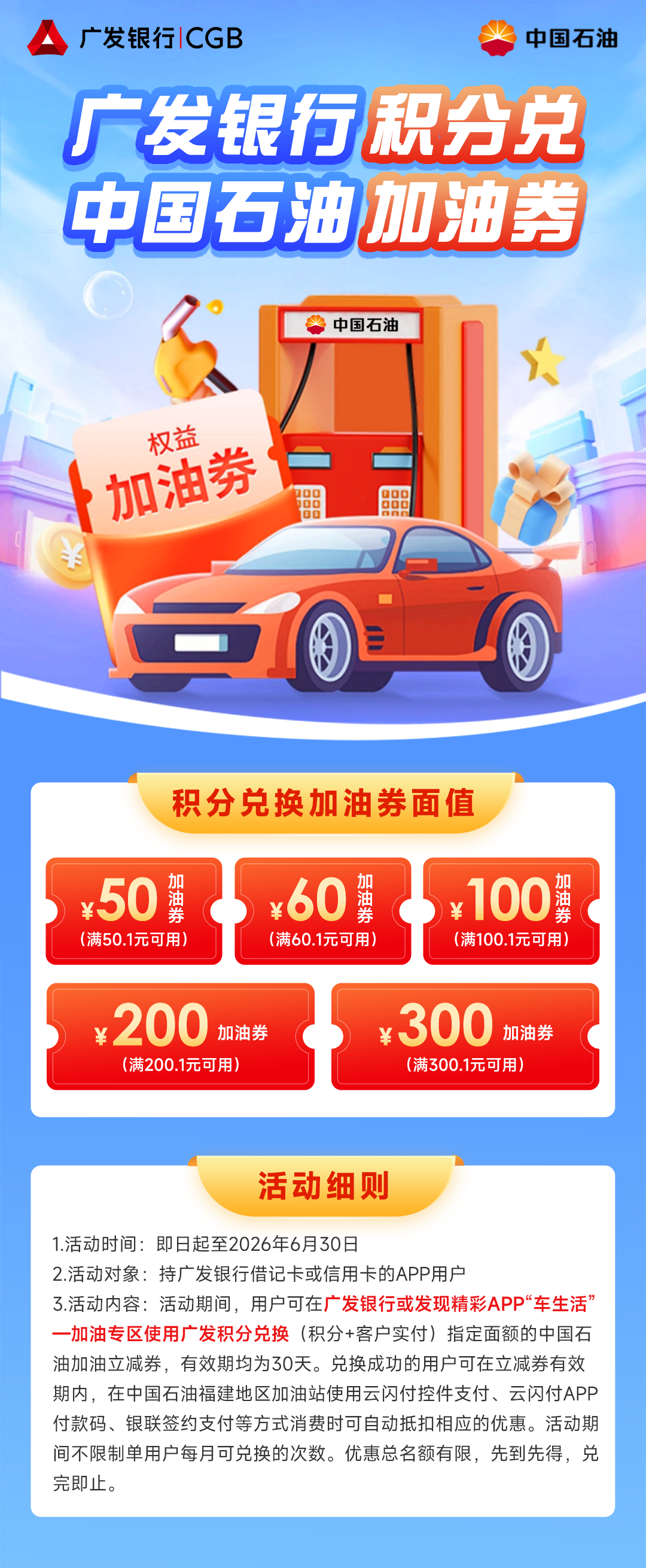 广发银行积分换油券!
