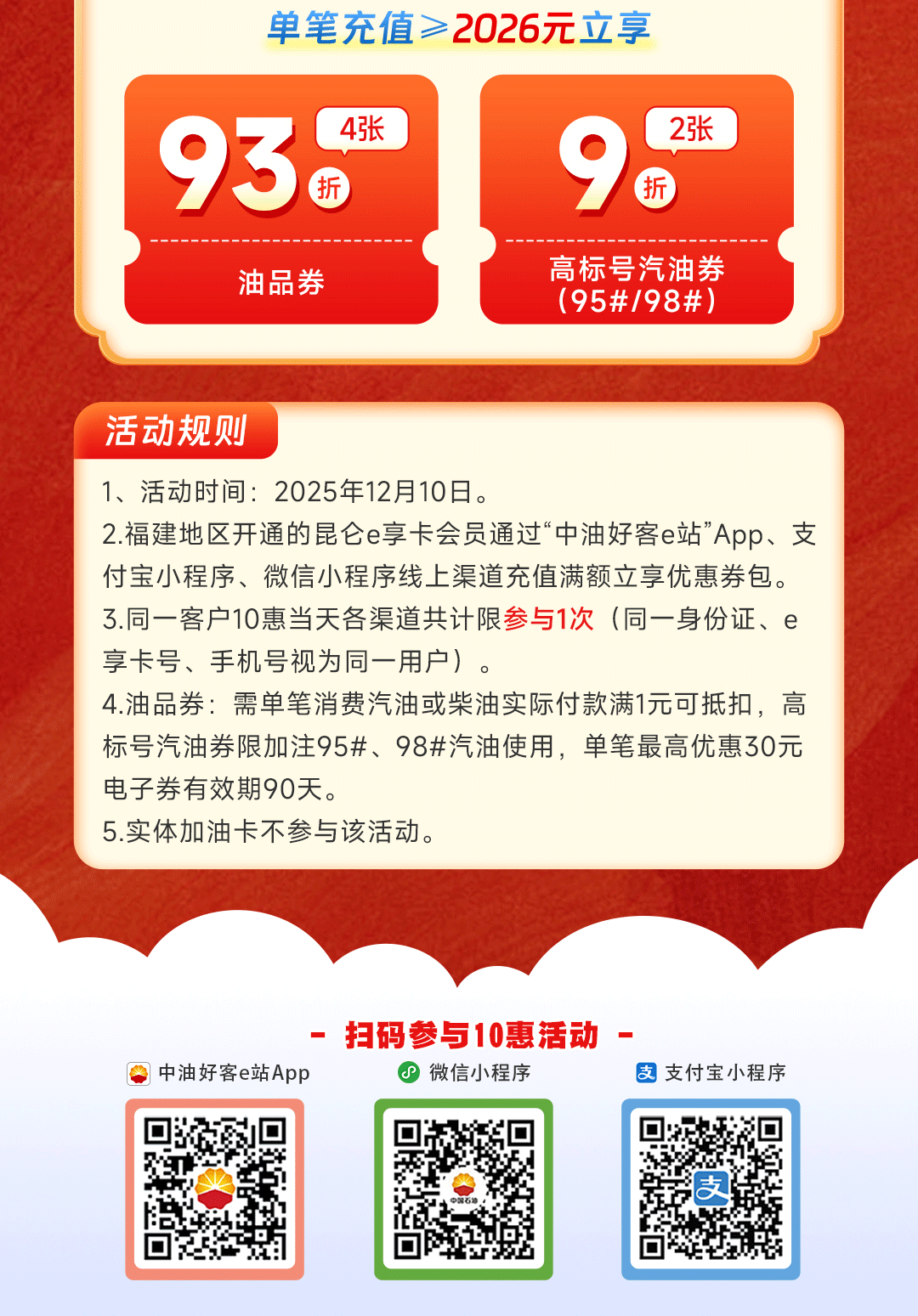10惠省钱充,立送加油券!