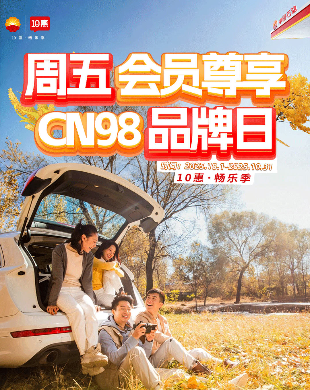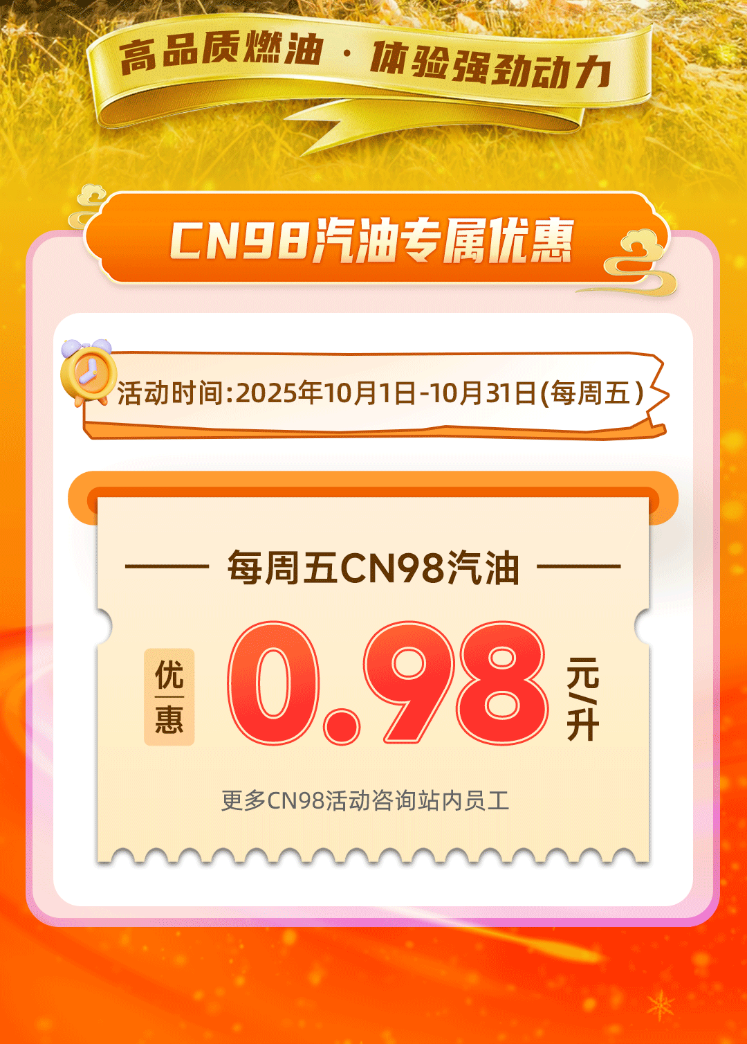 每周五CN98汽油品牌日,加油享特惠!