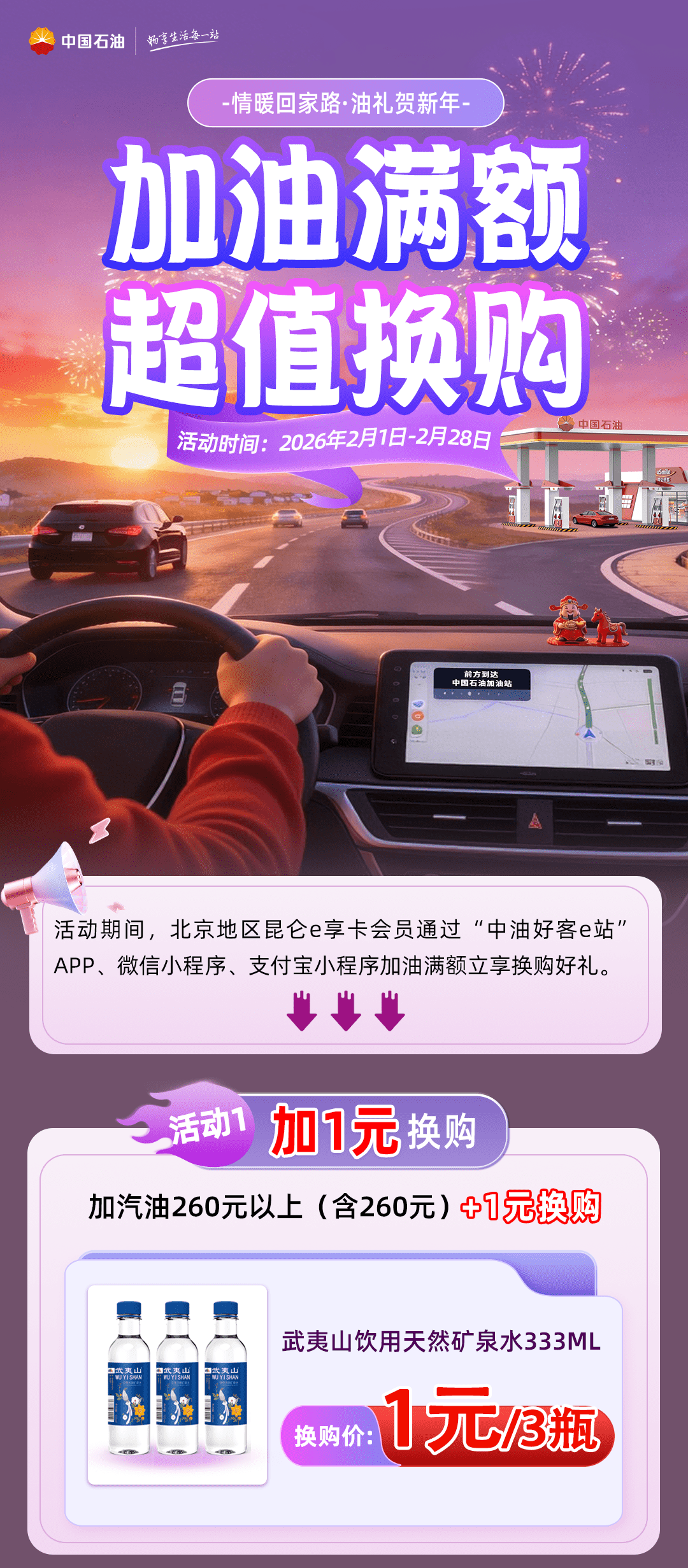 2月迎新春,加油换购礼!加1元、2元、5元、15元换购品质好礼!